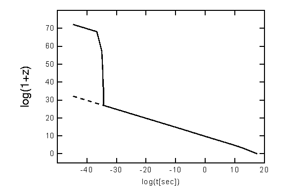 logaritmo de (1+z) frente al tiempo para un universo que pasó